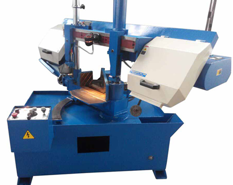 旋轉角度帶鋸床根據結構分為臥式和立式兩種結構,立式結構的角度帶鋸床其鋸架垂直設置,切割時工件移動,用以切割板料和成形零件的曲線輪廓,進行高效鋸切;臥式結構的角度帶鋸床其鋸架水平或傾斜布置,沿垂直方向或繞一支點擺動的方向進給,鋸帶一般扭轉40°,以保持鋸齒與工件垂直,其結構不同,鋸切的方式也不同。