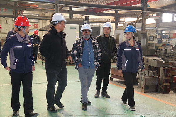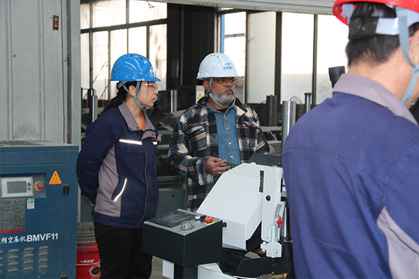 在郭總的帶領下,雙方成員前往生產制造車間詳細了解金鋒鋸業的帶鋸床、帶鋸條產品,以及帶鋸床的生產流程和研發創新成果。對主營帶鋸床的性能、優點以及一系列細節進行詳細介紹,并與印度客戶詳細講解行業定制經驗以及疑難處理經驗。印度客戶經過詳細考察后,表達了對金鋒鋸業的高度認可。