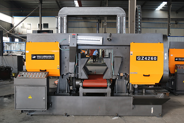 GZ4260龍門臥式帶鋸床是一款高性能金屬切割設備,采用雙圓柱雙油缸結構設計,鋸切更加穩定。此鋸床結構堅固穩定,確保了鋸切過程中的高精度與可靠性。其簡潔大氣的工業外觀設計不僅美觀,更彰顯專業品質,是現代化金屬鋸切的理想設備。