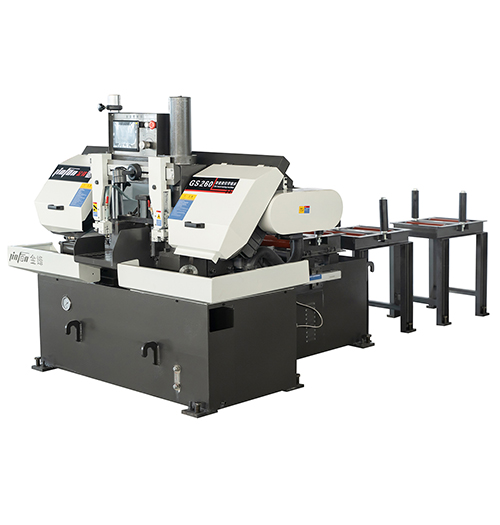 金鋒帶鋸床分為半自動帶鋸床或全自動帶鋸床,半自動鋸床配備按鈕和無極調速,方便快捷。全自動鋸床又稱數控鋸床,配備高敏度彩色觸摸屏,精度高,操作直觀便捷,新手也能切割0失誤。還采用PLC控制系統,可設置一組或幾組連續切割,適用于批量生產的企業。