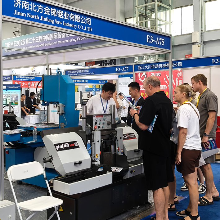 展會期間,金鋒市場部為觀眾現場演示了鋸床的強大切割性能,并通過專業細致的技術講解,吸引了大量客戶駐足咨詢。許多客戶表現出濃厚興趣,主動留下聯系方式,更有一位客戶現場簽單,成功訂購一臺GS260數控帶鋸床。通過此次沈陽展會,金鋒鋸業進一步洞察了市場對帶鋸床的最新需求。我們將積極傾聽客戶反饋,持續優化產品,致力于打造質量更優、技術更強的帶鋸床設備。