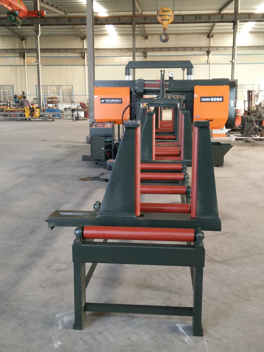 (6)鋸條前后各一套送料床身,最后一刀切割時,通過檢測信號可把物料全部輸出設定成需要的長度,齊頭切割,不留料尾。