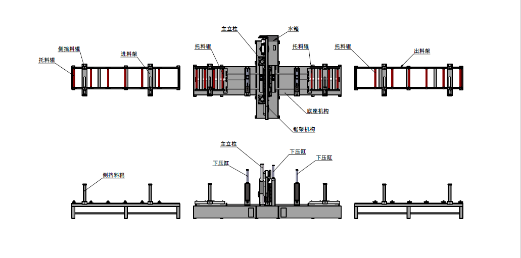 (7)床身及料道,進(jìn)料出料兩側(cè)配有立式滾筒,可根據(jù)所切料的寬度調(diào)整,方便整束切割時導(dǎo)向